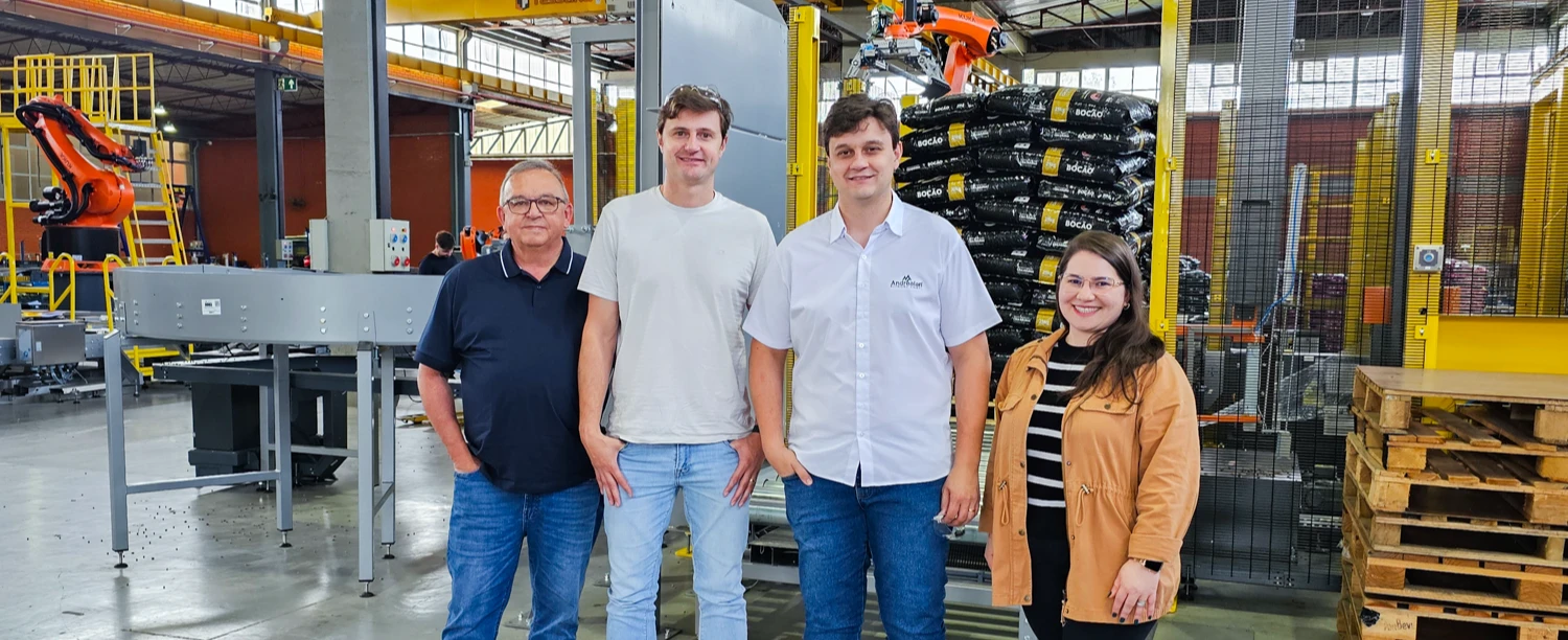 Essa semana, tivemos a satisfação de receber nosso cliente Andrealan Nutrição Animal, representada pelos Senhores Allan Baschirotto e Andrey Baschirotto para a realização do FAT da nova Célula de Paletização de Sacos de Ração.